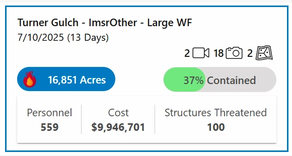 - Updated Incidents Details and Services – Improved Active Incidents Service to improve synchronization between IRWIN, WFIGS, and SIT-209. WildFireSA and NIFC This creates a simplified integrated single incident points service which combines Large Incidents, Active Incidents, Emerging Incidents, Prescribed Fires into 1 service. This will improve the synchronization of acreage, timestamps, and attribute updates for all incidents. This will also means improved attributes on the incident details panel and pop-up.